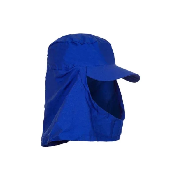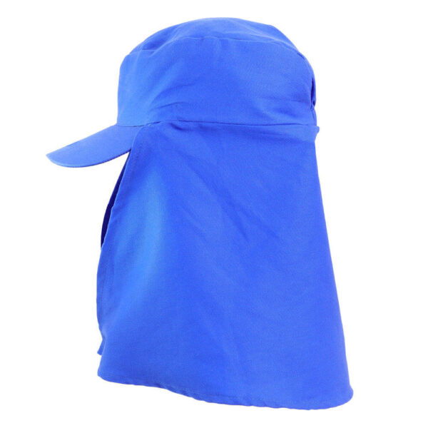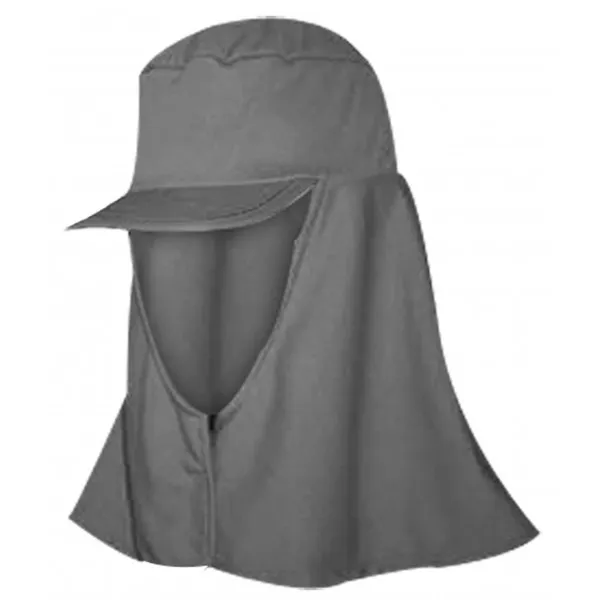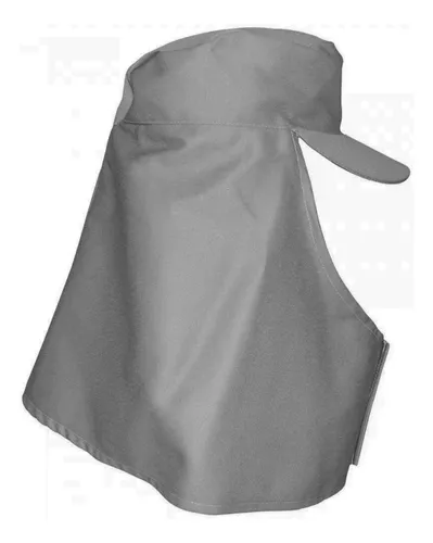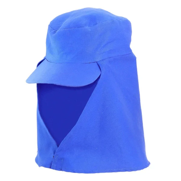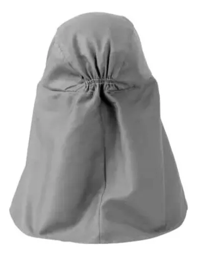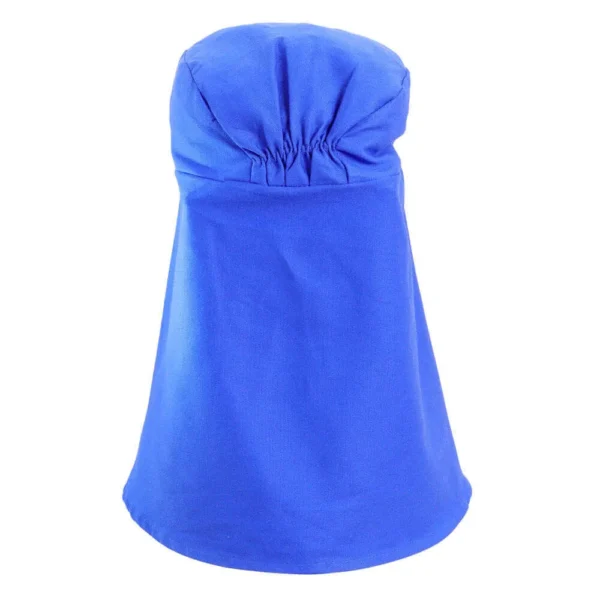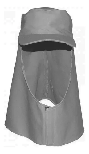 Boné de segurança confeccionado em tecido de algodão tipo brim com tratamento retardante a chamas, modelo árabe, com aba de polipropileno, fechamento frontal em velcro, costura com linha de algodão retardante a chama.