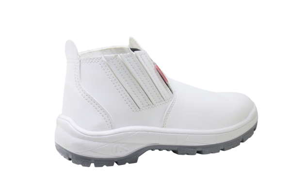Botina Soldador Kadesh, linha Micro K, em microfibra, branca, com solado em poliuretano (PU).