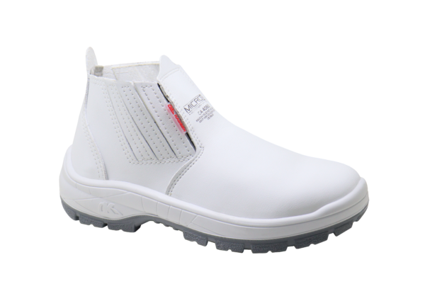 Botina Soldador Kadesh, linha Micro K, em microfibra, branca, com solado em poliuretano (PU).