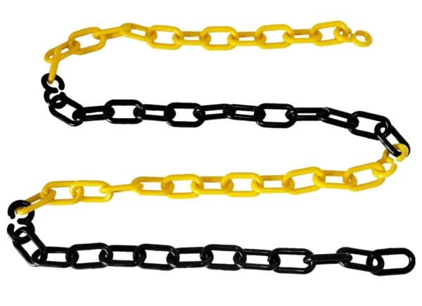 Acessório para pedestal injetado em PEAD ( polietileno de alta densidade) nas cores padrão: preto e amarelo, em dois tamanhos de elos: pequeno e grande.