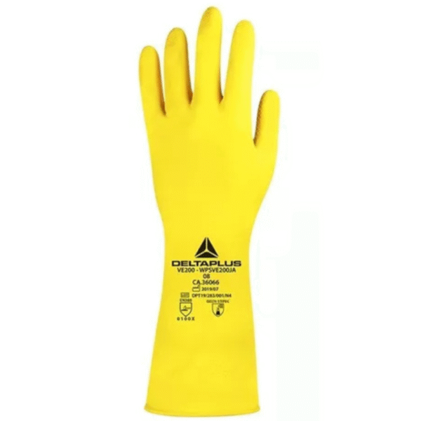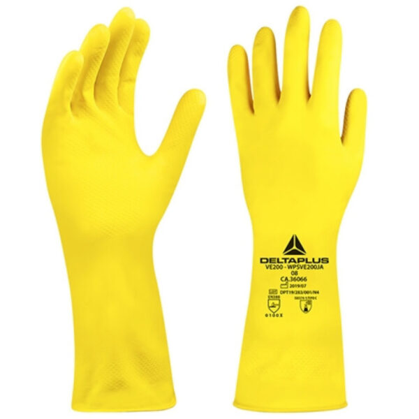 Desenvolvida com borracha natural de alta qualidade, a luva de proteção VE200 da DELTA PLUS oferece boa resistência química e conforto. O acabamento interno flocado facilita a sua colocação e remoção. O acabamento do punho em virola oferece mais resistência na colocação evitando o seu rasgamento.