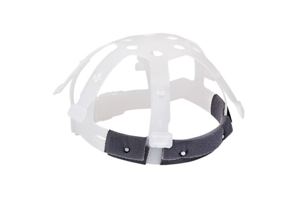 Suspensão plástica injetada em polietileno de baixa densidade com aparador de suor TNT/Espuma. • 6 pontos de fixação e de fácil ajuste. Utilizada no Capacete Camper para distribuição de peso e absorção de impactos sobre o crânio.